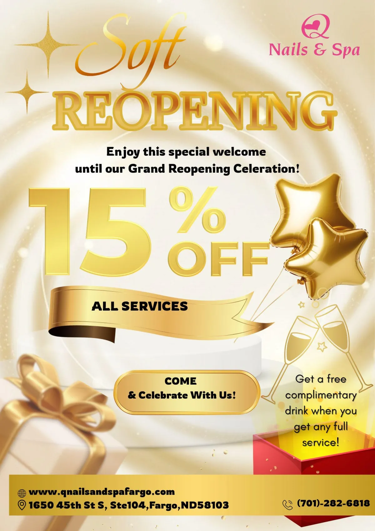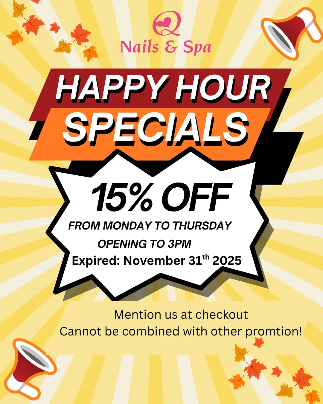 At Q Nails & Spa, our customer's satisfaction is of upmost importance to us. We vow to ensure you are happy with what you paid for.