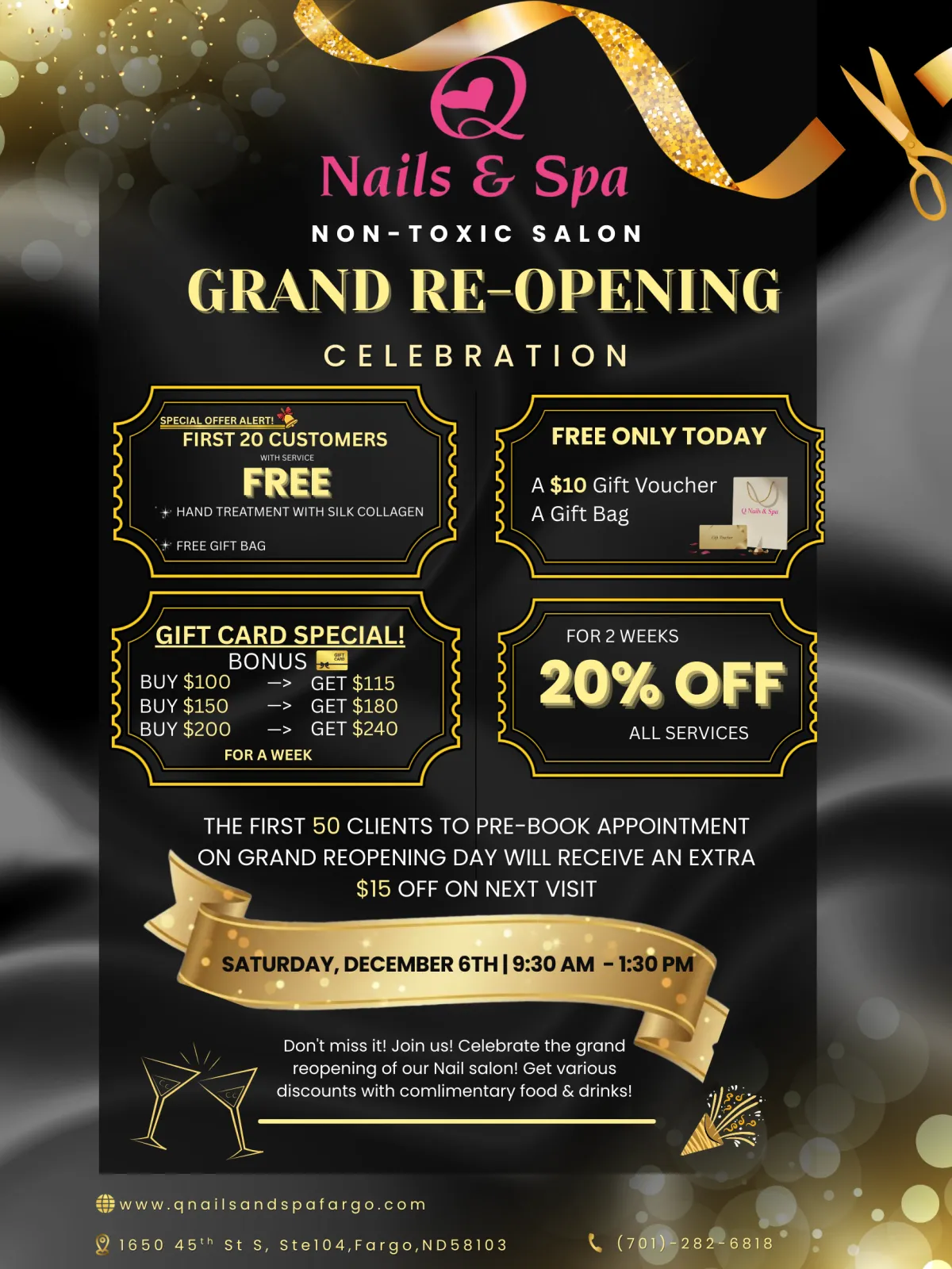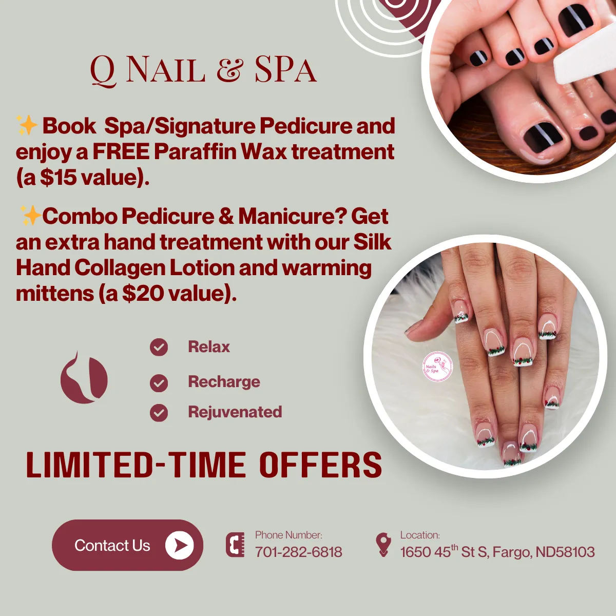 At Q Nails & Spa, our customer's satisfaction is of upmost importance to us. We vow to ensure you are happy with what you paid for.