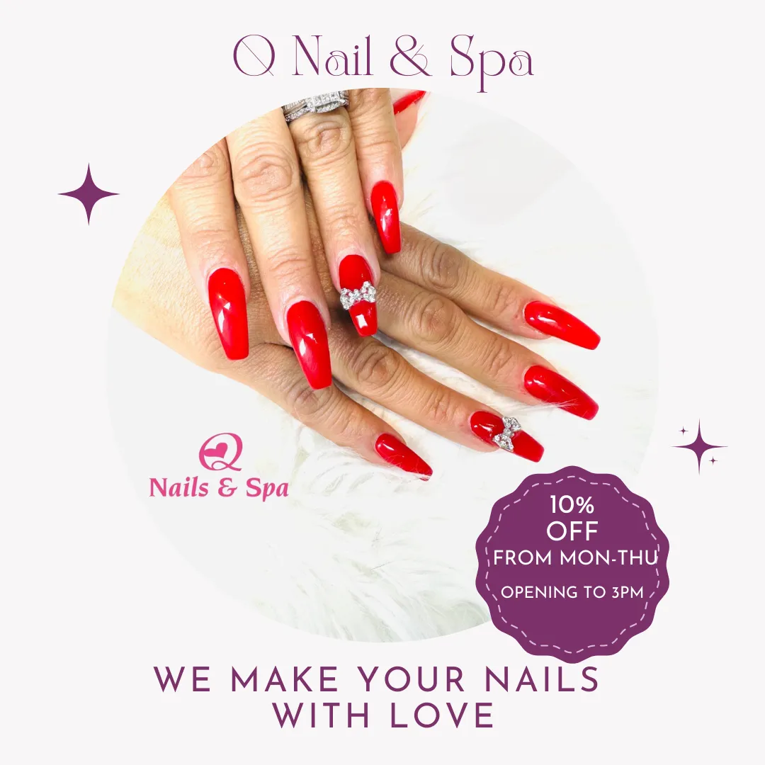 At Q Nails & Spa, our customer's satisfaction is of upmost importance to us. We vow to ensure you are happy with what you paid for.